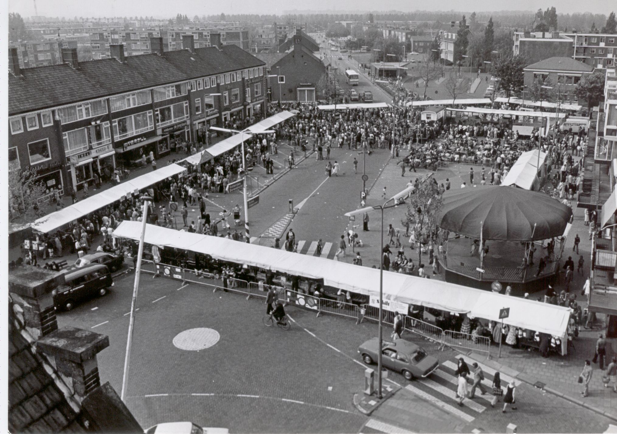 Overzicht van bedrijvigheid vanaf het balkon van het oude gemeentehuis,