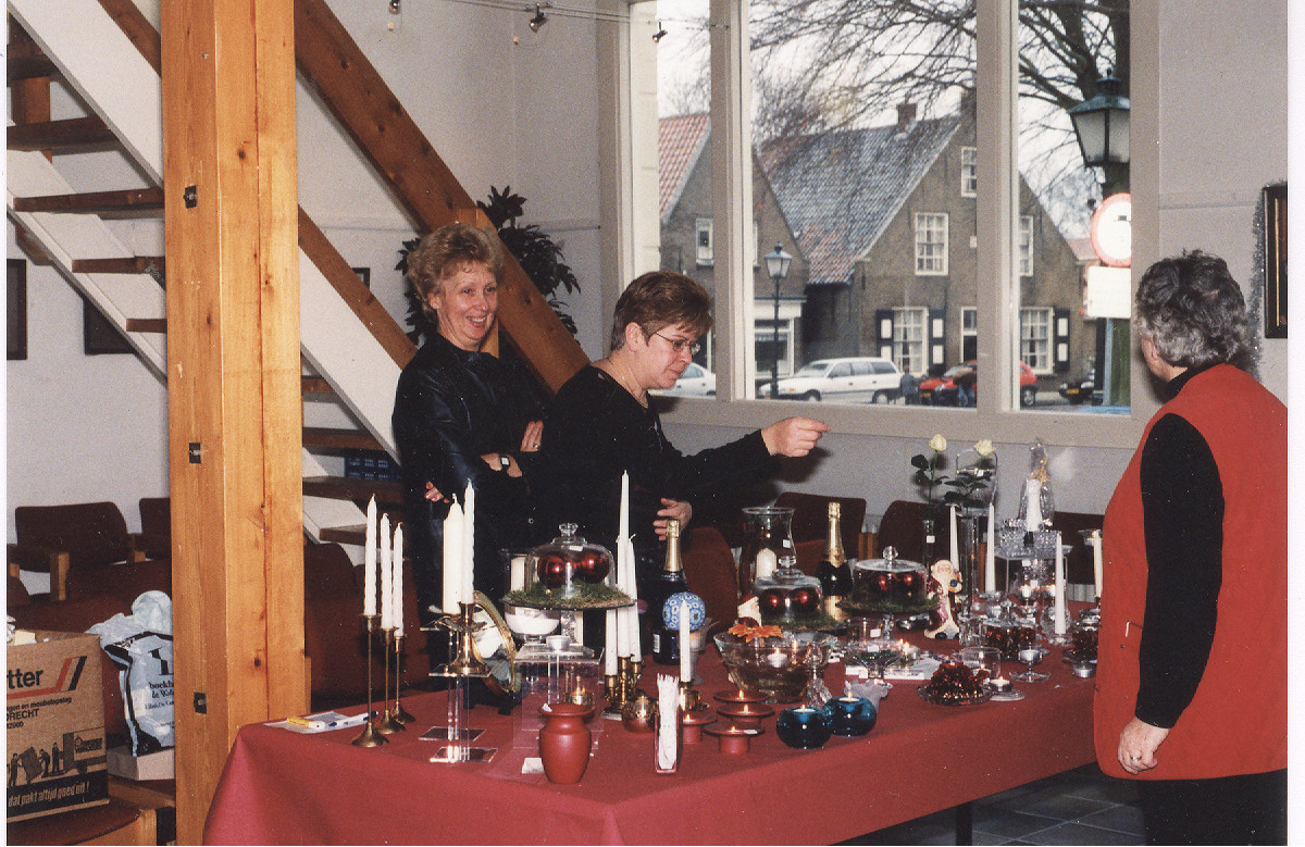 Kerstmarkt met links mevr Schumacher en daarvoor Mieke van't Zelfde-Roest